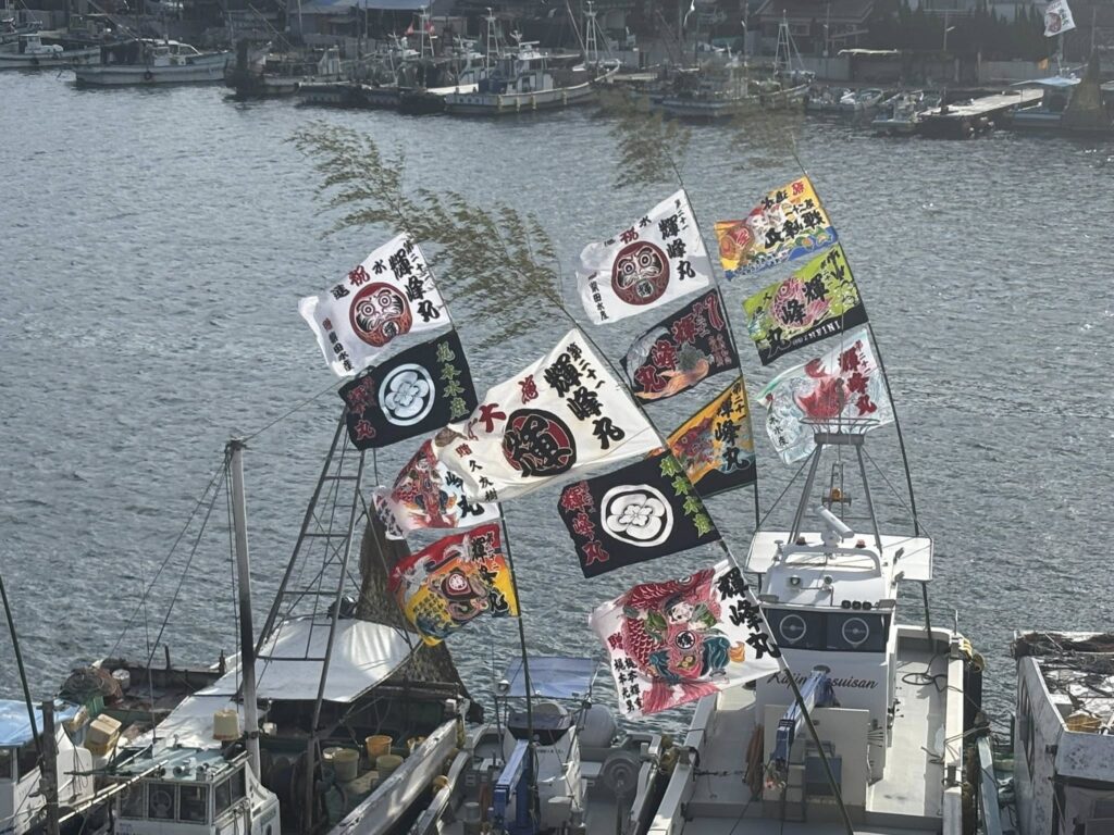 港に入ると、思っていた以上の大漁旗が目に入ってきました。 色とりどりの旗が風に揺れ、冬の港に静かな華やかさを添えています。 どれも派手なのに、不思議とうるさくはなく、漁港の正月らしい落ち着きがあります。 一年の無事と豊漁を願う気持ちが、言葉... -
